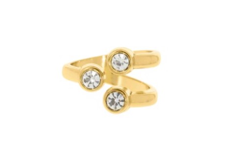 Anel Estela um clássico que exala sofisticação com o brilho delicado de três pedras de strass. Ideal para quem busca um acessório elegante e atemporal, o Estela complementa qualquer look com um toque sutil de luminosidade e estilo.